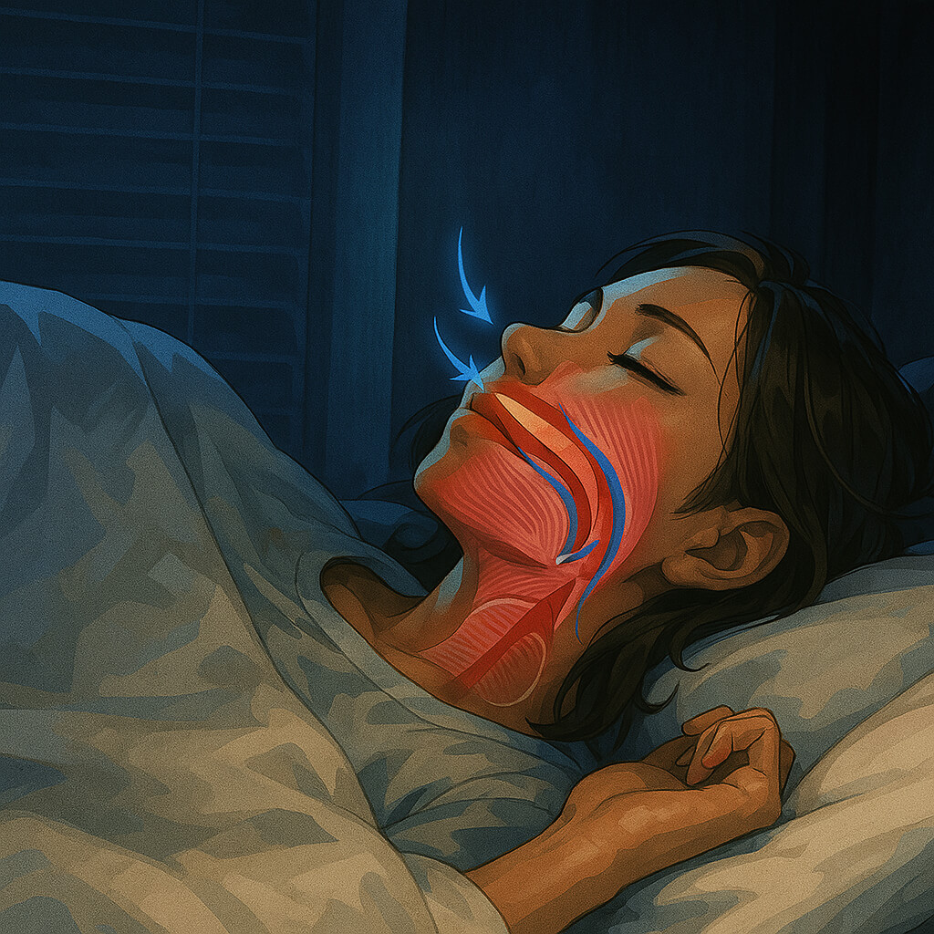 止鼾牙套可將上下顎和舌頭調整至正確位置,防止軟組織塌陷、阻塞呼吸道的情況,以減輕或消除鼾聲。